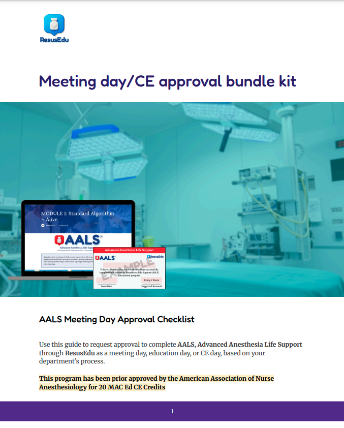 Use this guide to request approval to complete AALS, Advanced Anesthesia Life Support through ResusEdu as a meeting day,