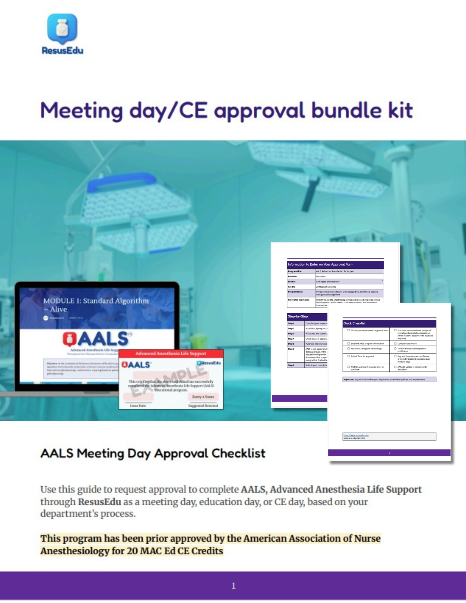 Use this guide to request approval to complete AALS, Advanced Anesthesia Life Support through ResusEdu as a meeting day,